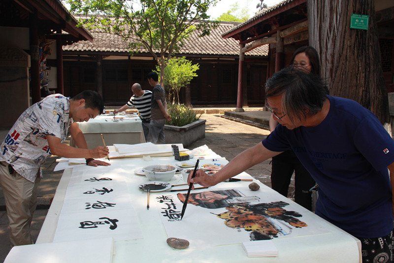 四川省美术家协会副主席、原绵阳市美术家协会主席吴映强,市书协副秘书长唐龙在现场书画