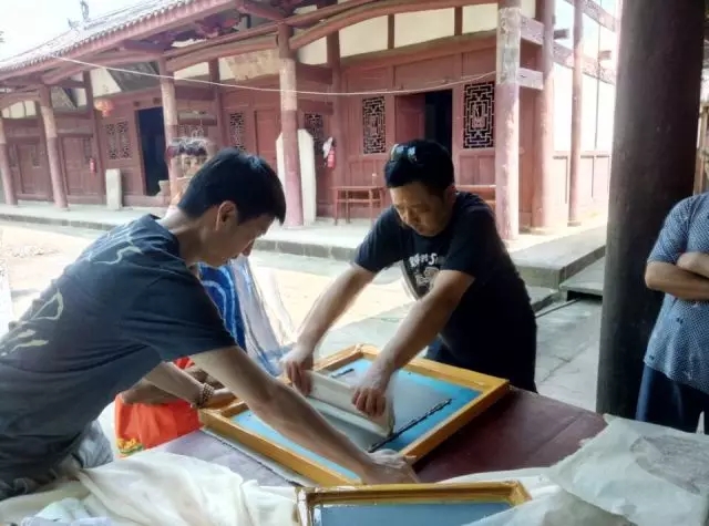 绵阳市美术家协会主席马力平、市美术家协会副主席兼秘书长顾洪斌现场为群众制作版画