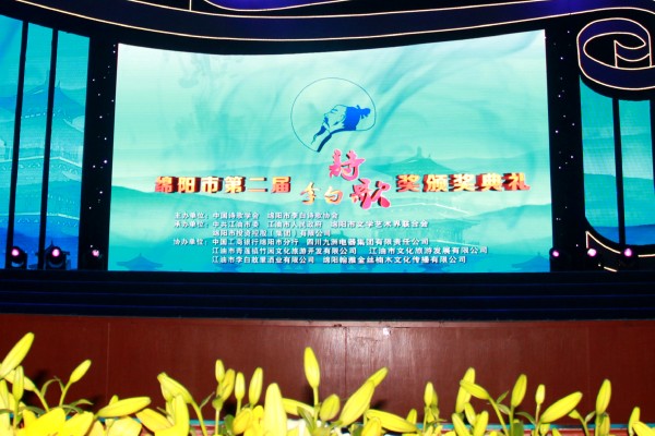 颁奖典礼上,一场以诗歌为主的文艺演出,为在场嘉宾观众献上了一场文艺大餐。以青年、壮年、老年李白构成三个不同的片段融入到文艺表演的三个板块,由本地作家作词作曲和本地单位团体演出的主题曲《千古李白》、舞蹈《侠客行》、诗朗诵《蜀道难》……使整个颁奖典礼不仅让观众体会到诗情画意的歌舞之美,也让观众更好地感受李白文化,品味中华诗歌文化韵味。