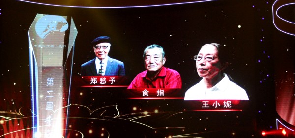 颁奖典礼现场,白庚胜、黄怒波、谢冕、阿来、张锦明为荣获“李白诗歌奖”提名奖的诗人王小妮、食指、郑愁予、韩文戈、梁雪波、桑子颁奖。6位诗人分别从各地赶到绵阳出席颁奖典礼,纷纷发表了精彩的获奖感言。