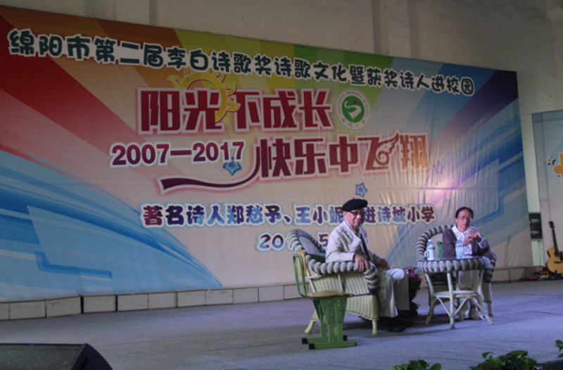 “作为一名抗战儿童,我羡慕诗城小学的孩子们能拥有诗意的童年。”著名诗人郑愁予动情地说。5月31日,第二届李白诗歌奖获奖诗人郑愁予、王小妮、食指、韩文戈、梁学波、桑子来到“李白故里”-——江油,分别走进了具有浓郁诗歌特色的江油市诗城小学和江油一中,与孩子们共同庆祝六一儿童节。