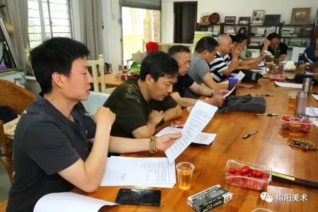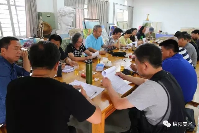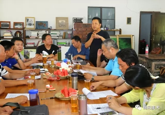 会议由美协副主席兼秘书长顾洪斌主持。顾洪斌首先传达了3月17日市文联召开的2017年绵阳市文艺家协会工作会精神。接着美协主席马力平介绍了近期协会配合市文联组织的送文化到军营、送文化到农村的活动情况,美协副主席张道富介绍了协会微信平台、协会公众平台建设情况,协会副秘书长李华明介绍了协会年审、法人变更、协会上网印章、公用银行账户办理等情况。随后,共同讨论了绵阳市美协领导班子管理规则草案及各艺委会主任、副主任人选。
